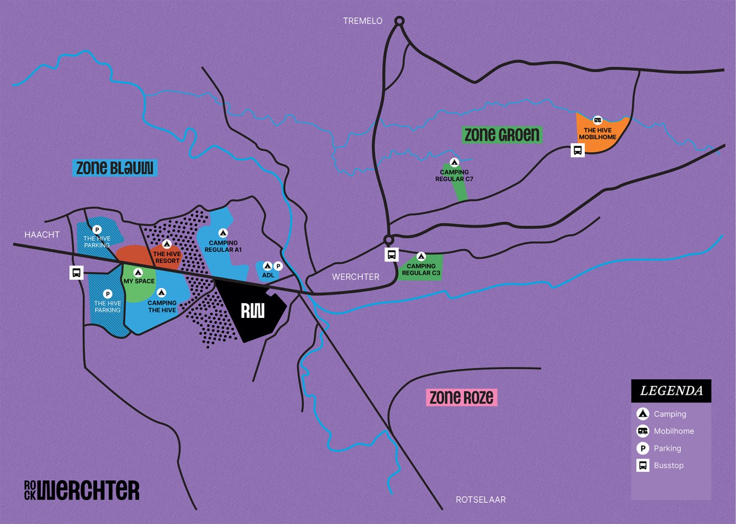 De 'Regular' kampeerterreinen A1, C3 en C7 bevinden zich op wandelafstand van het Festivalpark. Ze zijn eerder basic van opzet, daarom niet minder gezellig. Deze campings worden niet door de festivalorganisatie uitgebaat, wel door andere, particuliere organisatoren.
