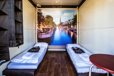 - la location d'une accommodation pour 2 personnes comprenant 2 lits préparés, 2 chaises, une table, boîte de rangement, une porte verrouillable et une alimentation électrique